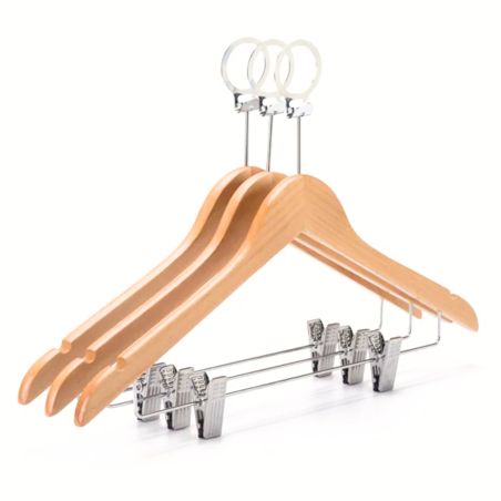 Hotelowy wieszak antykradzieżowy z klipsami drewniany