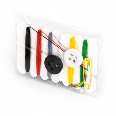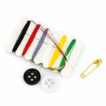Galanteria hotelowa. Zestaw do szycia. Igielnik hotelowy składa się z 6 kolorów nici, igły, agrafki i 2 guzików. Opakowanie nadaje się w 100% do recyklingu. Opakowanie zbiorcze (karton) 250 sztuk.